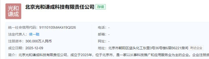 光和谦成注册地在北京市垡头化工东里3号36号楼,导航软件显示该地址为百思特大厦,距欢乐谷2公里左右。